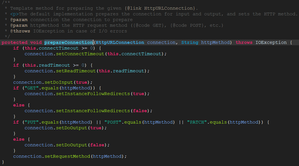 이 클래스에서 request를 생성할 때 사용하는 메서드 createRequest 안에 있는 prepareConnection 메서드를 보면 아래와 같은 코드가 있다.